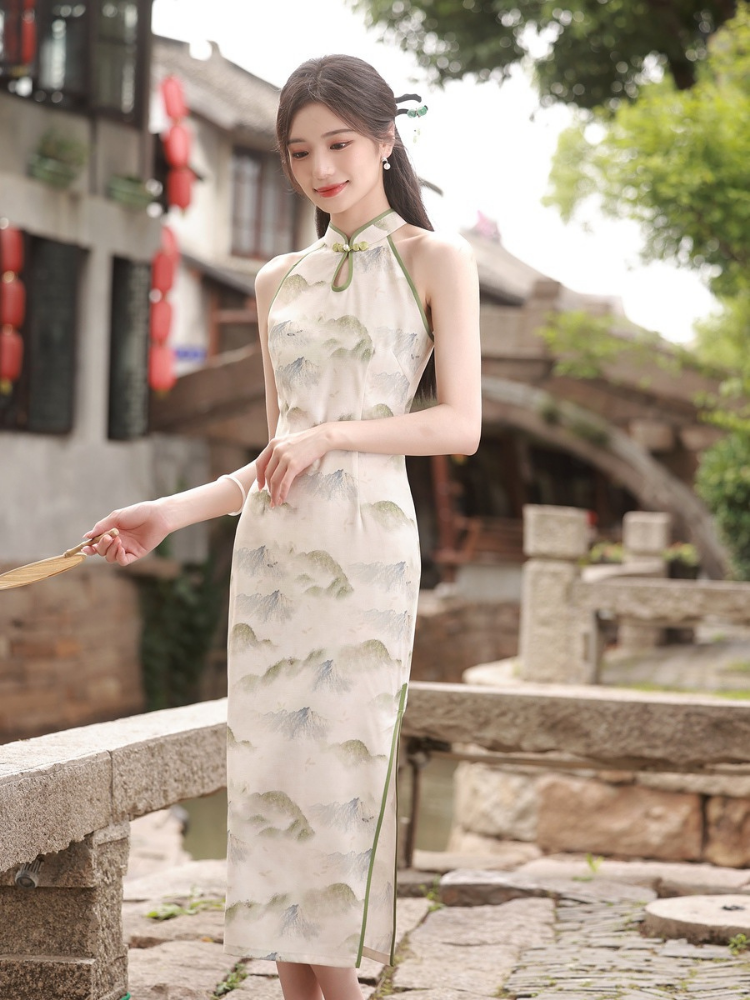 Embrace the classic aesthetics of the new era with our New Chinese Sleeveless Cheongsam. The cleverly concealed invisible zipper design flawlessly showcases your perfect curves. The retro stand-up collar design is both simple and fashionable, exuding a unique charm. Meanwhile, the sexy slit design allows you to maintain a slim figure while exuding a romantic vintage vibe.