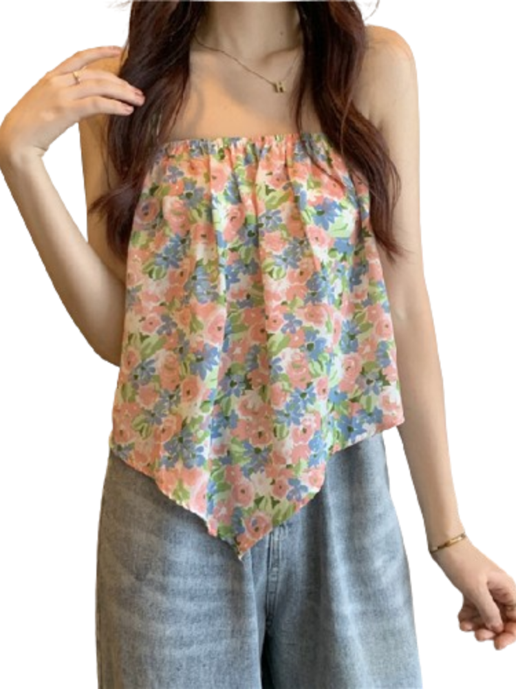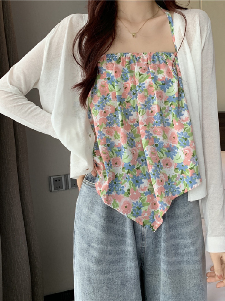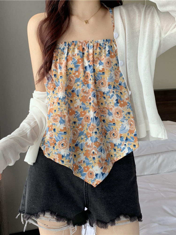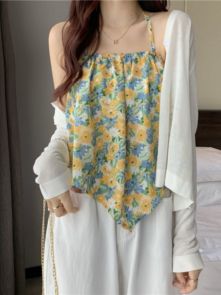 This artistic and retro floral halterneck camisole features an irregular halterneck style, showcasing the graceful figure of women. Made of polyester fabric, it's soft, comfortable, and breathable, allowing you to feel refreshed even in hot summer days. The double-strap design highlights the overall sense of fashion and individuality, pairing well with simple pieces to effortlessly achieve a trendy look.