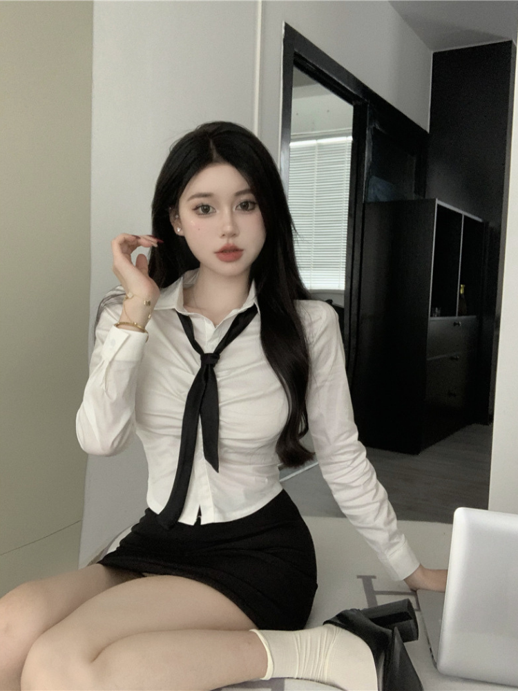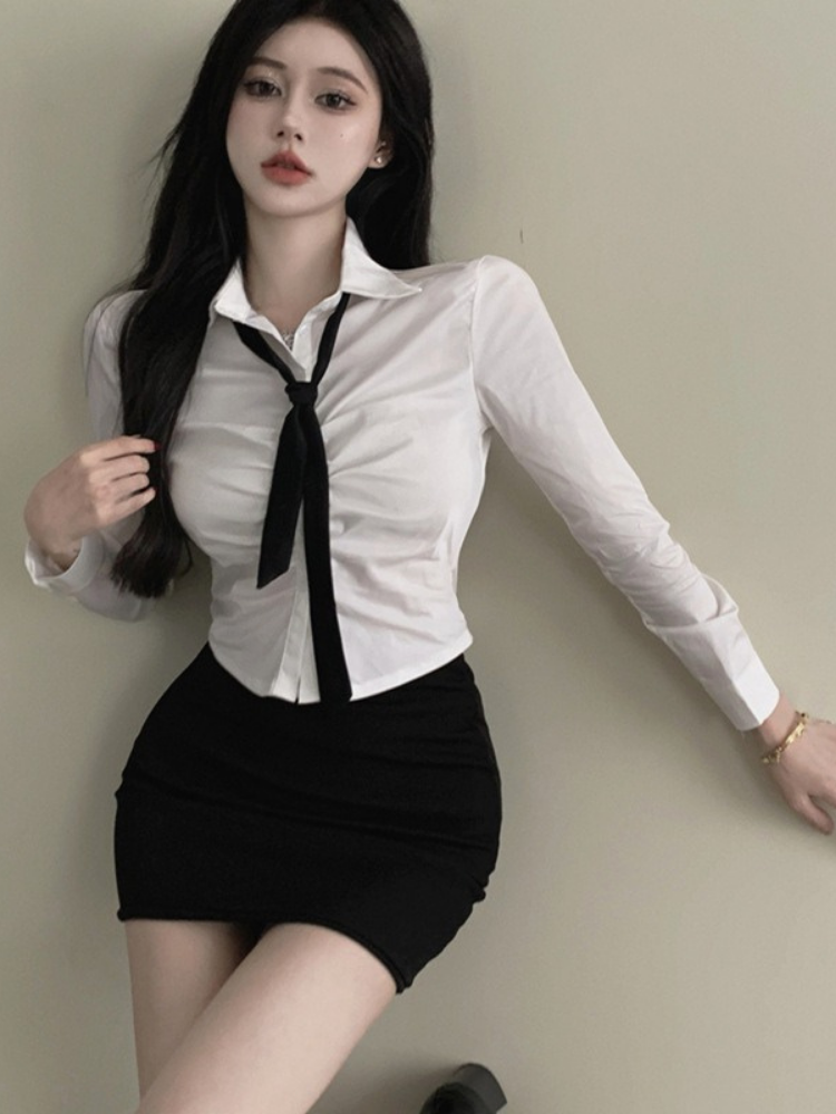 The Pure Desire High-end Two-piece Set features a POLO collar design, stylish and simple, with a slim fit silhouette that showcases elegant temperament. The shirt-style long sleeve design is versatile and practical, paired with delicate pleats for added fashion taste. The single-row multi-button design is full of detail beauty, suitable for autumn commute wear, showcasing Korean-style fashion sense.