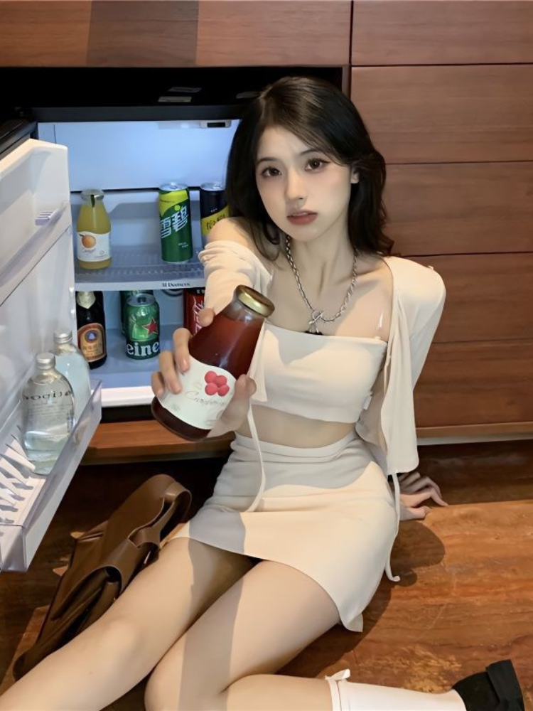 Hot summer days, how could you miss out on a set of sexy bandeau short three-piece suit? This fashionable design includes a bandeau top, short cardigan, and hip-hugging mini skirt, showcasing your charming figure. Crafted from premium spandex fabric, it offers a snug and comfortable fit, while the princess sleeves add a touch of allure, embodying a mature and sophisticated style.