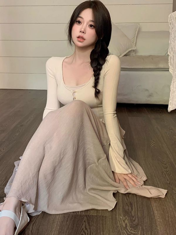 This vintage palace-style three-piece set features a classic round shoulder design that is both comfortable and slimming. The unique prints and letter decorations on the chest add a touch of fun and vitality to the overall look, while also creating a visually appealing layered effect. The ribbed hemline ensures it retains its shape and drapes well, making it suitable for both casual wear and workplace attire.